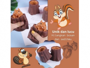 Squeeze Squirrel Viral Squisy Tupai Pencet Animal In Cup Anti Stress
