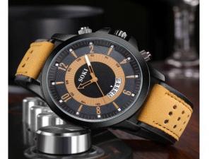 Jam Tangan Pria Soki S014 Strap Kulit Arloji Analog Sports Olahraga