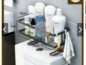 Rak Kamar Mandi Tempel Rak Toilet Organizer Tempat Penyimpanan Gantung Anti Karat Tanpa Bor