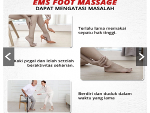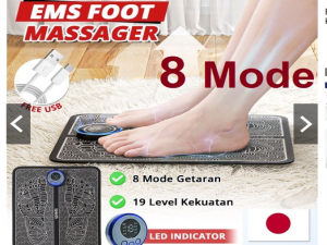 8 mode (19 Level intensitas)\\r\\n - mode-Massage\\r\\n - mode-Activation\\r\\n - mode-Train\\r\\n - mode-Knead\\r\\n - mode-Shaping\\r\\n - mode-Extrusion\\r\\n - mode-Beat\\r\\n - mode-Slap\\r\\n\\r\\nEMS Foot Massager menggunakan Bantalan kaki yang lembut dan nyaman, ringan, dapat dilipat, mudah dibawa kemana-mana, dapat dikeringkan dengan handuk basah setelah digunakan. Pijat kaki elektrik ini menawarkan mode dan intensitas perawatan yang berbeda untuk telapak kaki Anda. Menggunakan teknologi EMS (Electrical Muscle Stimulation) untuk pijat kaki, pergelangan kaki, tendon achilles, dan otot betis, untuk melancarkan sirkulasi darah dan merilekskan kaki.\\r\\nStimulasi Otot Listrik (EMS), juga dikenal sebagai stimulasi listrik neuromuskular (NMES) adalah elisitasi kontraksi otot menggunakan impuls listrik.Impuls meniru potensi aksi yang datang dari sistem saraf pusat, menyebabkan otot berkontraksi.EMS terbukti cukup efektif sebagai alat proaktif untuk penguatan otot.\\r\\n\\r\\nUntuk apa EMS digunakan?\\r\\n1, Tujuan Rehabilitasi Penguatan Otot\\r\\n2, Mencegah disuse Muslce atrophy javemay Meningkatkan sirkulasi darah lokal\\r\\n3, Relaksasi otot Pengencangan otot kosmetik\\r\\n\\r\\n8 mode.\\r\\n- Pilih 8 dengan operasi sederhana\\r\\n- Ini akan mematikan daya secara otomatis setelah 12 menit dari berhenti, ketika Anda lupa matikan.\\r\\n- 8 mode dengan Intensitas stimulasi dibagi menjadi 19 level (intensitas1-19)\\r\\n\\r\\nDi sarankan penggunaan satu kali per hari.\\r\\n\\r\\nIsi Ulang Daya\\r\\nAlat pijat EMS kaki ini menggunakan baterai isi ulang sehingga tidak perlu repot untuk colok ke listrik saat sedang digunakan.\\r\\n\\r\\nCara Penggunaan:\\r\\n1, Tekan tombol daya \\\"+\\\" untuk menyalakan dan meningkatkan intensitas.\\r\\n2, Tekan tombol \\\"_\\\" untuk power off dan menurunkan intensitas\\r\\n3, Tekan tombol \\\"M\\\" untuk mengganti mode\\r\\n\\r\\nSpecification: \\r\\nKondisi : 100% Brand New\\r\\nItem Type: EMS Foot Massager,\\r\\nWarna : Seperti Foto\\r\\nBaterai : dapat di isi ulang\\r\\nSize: Approx.30.8 * 28cm\\r\\n\\r\\nPackaging : \\r\\n1 x Electric EMS Foot Massager\\r\\n1 x Foot pad\\r\\n1 x User manual\\r\\n1 x Usb cable\\r\\n1 x Box
