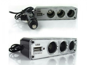 Car Charger Splitter yang memiliki 3 socket lighter sehingga Anda memiliki port lebih banyak untuk mencharge gadget Anda secara bersamaan. Splitter ini memiliki ekstra output USB dan memiliki output 24V pada masing-masing socket