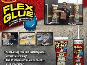 - FLEX GLUE ™ adalah lem tahan air yang mudah digunakan, super kuat, berlapis karet, yang secara instan mengikat, menyegel, dan memperbaiki hampir semuanya! Teknologi ambil instan perekat ini menahan benda-benda di tempat dan, dalam banyak kasus, menghilangkan kebutuhan akan kawat gigi. Menyembuhkan dalam 24-48 jam dan mencapai kekuatan maksimum dalam 7 hari. Tidak perlu sekrup atau paku, itu sempurna untuk semua jenis perbaikan!