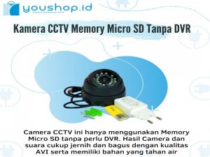 Camera CCTV ini hanya menggunakan Memory Micro SD tanpa perlu DVR. Hasil Camera dan suara cukup jernih dan bagus dengan kualitas AVI serta memiliki bahan yang tahan air (Waterproof) sehingga sangat cocok di indoor maupun Outdoor.