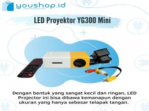 Dengan bentuk yang sangat kecil dan Sanger ringan, LED Projector ini bisa dibawa kemanapun dengan ukuran yang hanya sebesar telapak tangan. Mini YG300 sudah built in Speaker, sangat cocok untuk digunakan memutar video melalui Flash Disk, Micro Sd dan juga melalui Laptop, PC dengan kabel HDMI atau dengan kabel AV.