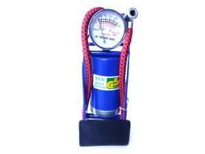 ja dibingkai pompa kaki dengan 50 x 120mm laras baja. Dial jenis tekanan gauge dengan berputar bezel. Gauge dikalibrasi dalam psi dan bar dan berkisar dari 0-100psi dan 0-7bar. Dilengkapi dengan 610mm selang tekanan fleksibel dengan clip-on konektor tipe. Disertakan dengan aksesori untuk item menggembungkan seperti perahu karet kecil, tempat tidur udara dan bola dll.