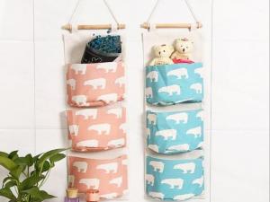 Dilengkapi tali dan kayu, bisa digantung di tembok ruang tamu, kamar tidur atau di belakang pintu. Ada hiasan pita cantik di bagian atas pouch, unik loh...