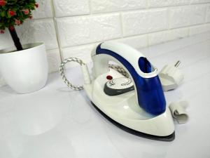 Setrika uap dengan desain dan model terbaru dan sangat praktis karena mudah dilipat dan dibawa ke mana-mana. Plat alas berupa Teflon anti lengket. Kegunaan dwi fungsi , bisa digunakan sbagai setrika biasa maupun sebagai setrika uap.