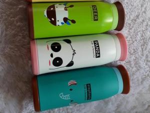Thermos dengan design karakter kartun yang lucu dan imut. Thermos ini dapat menampung air sebanyak 500ml dan bagian dalam terdapat besi insulasi agar suhu minuman tetap terjaga.