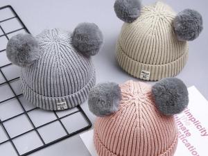 Produk terlaris PROMO - Topi kupluk wol hangat dengan hiasan bola untuk anak laki laki atau perempuan
