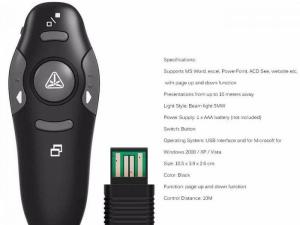 Pointer untuk presentasi yang full support PowerPoint, tinggal PLUG and PLAY, langsung jalan. Dilengkapi dengan tombol NEXT, PREV, Laser Pointer, Tombol SlideShow (F5), BlackScreen.