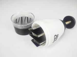 Di samping aman, alat ini juga sangat praktis digunakan. Rahasianya ada pada pisau baja karbon yang sangat tajam, yang akan memotong dan berotasi di sudut-sudut berbeda. Jadi, jauh lebih menyenangkan dan cepat ketimbang menggunakan pisau dapur biasa. Anda tinggal menekan ujungnya, lalu segala jenis sayur, buah, daging, bumbu-bumbu dan lainnya pun dapat terpotong dengan sempurna.